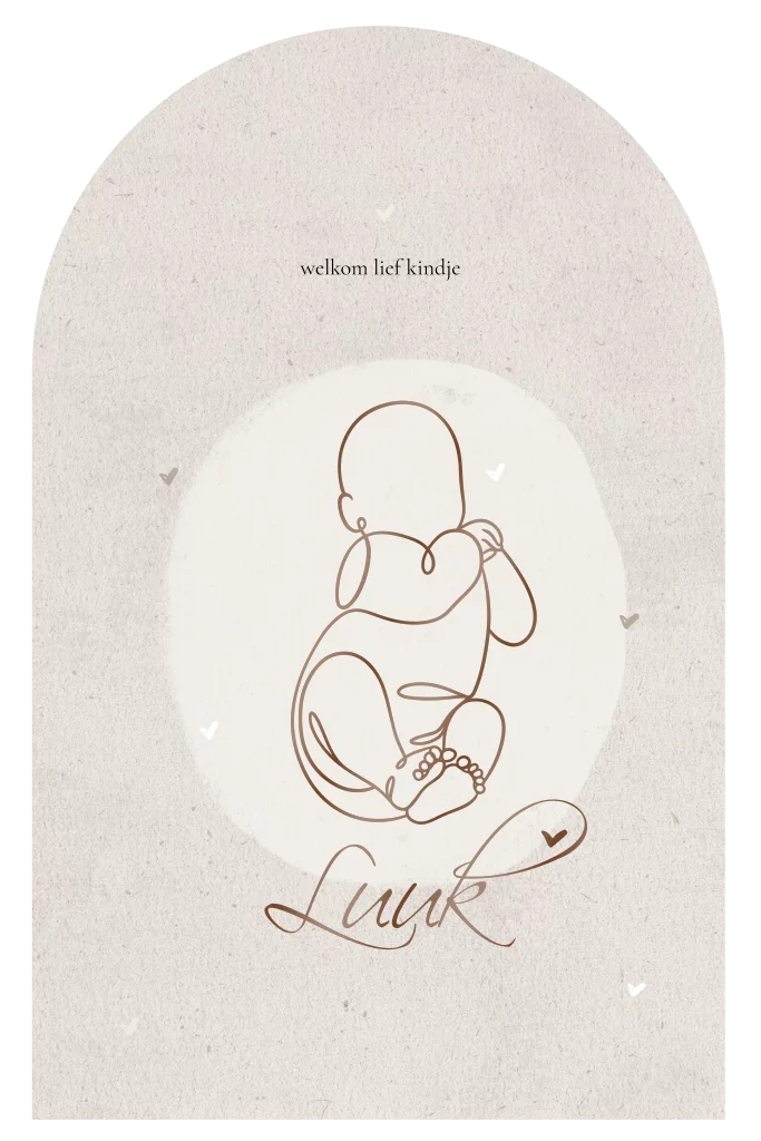 Bijzondere vorm naturel geboortekaartje met lijntekening
