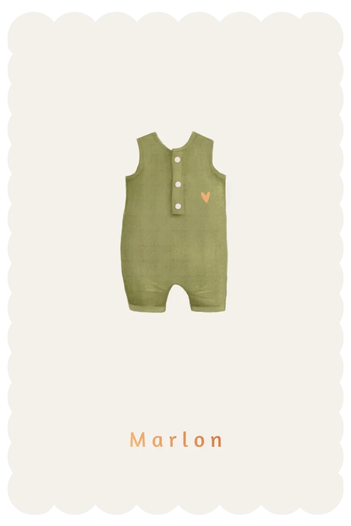 Lief en puur geboortekaartje met een handgetekende olijfgroene romper en subtiel hartje. De zachte tinten en geschulpte rand geven dit kaartje een warme, tijdloze uitstraling. Perfect voor ouders die houden van minimalistisch met een speels detail. Persoonlijk aan te passen met naam en geboortegegevens.