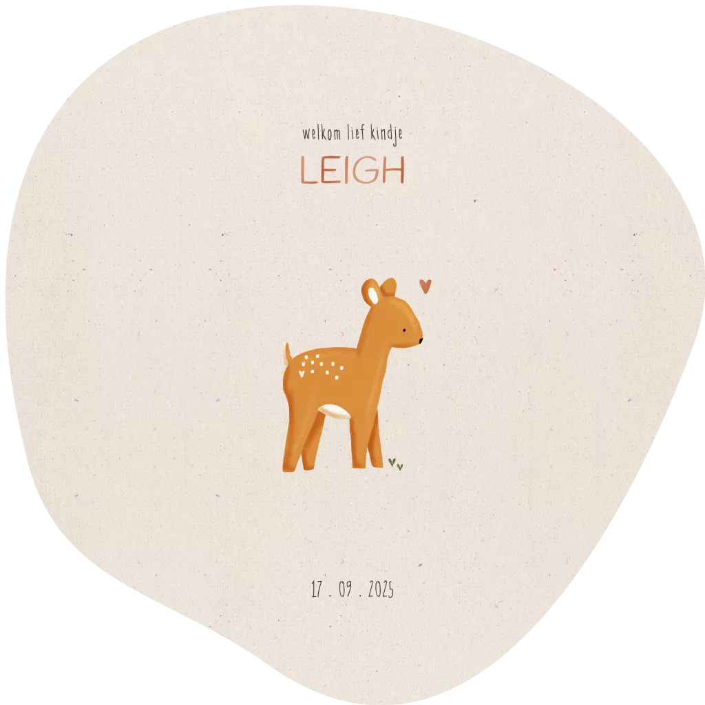 Lief geboortekaartje bijzondere vorm met schattig hertje