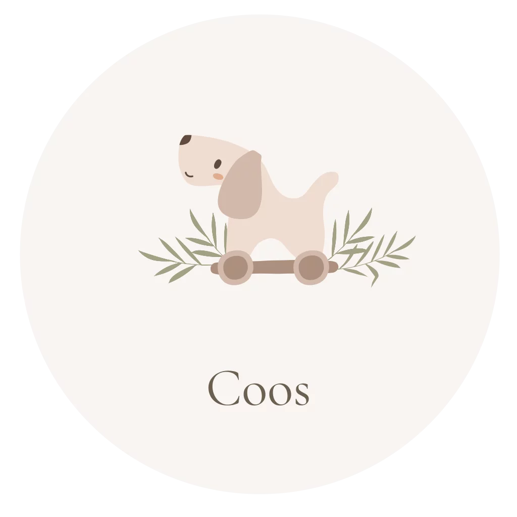 Een lief, rond geboortekaartje om de komst van jullie zoon of dochter aan te kondigen. Een superlief en origineel geboortekaartje met lief speelgoedhondje en takjes. Pas het geboortekaartje naar wens aan bestel een proefdruk voor € 2,50 om dit kaartje in het echt te bewonderen.