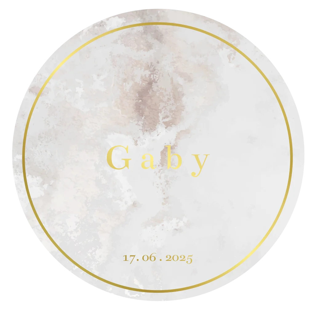 Rond geboortekaartje met marmer look en goudfolie voor een jongen of meisje. Je kunt zelf kiezen welke kleur foliedruk je wilt en ook kun je de lettertypes aanpassen in de online editor.