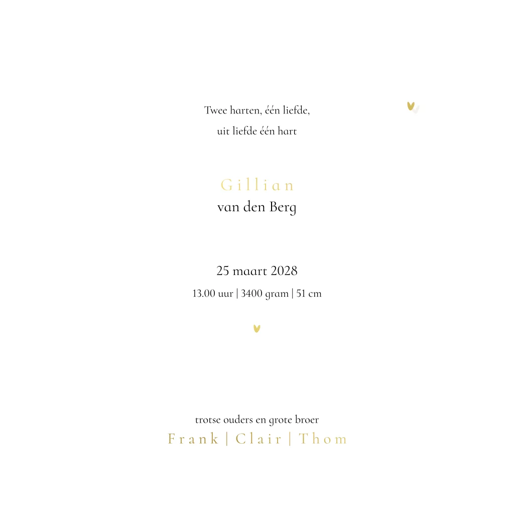 Dit lieve geboortekaartje met een uitgesneden hartje en een schattig wiegje is perfect voor de aankondiging van jullie zoon of dochter. Om er zeker van te zijn dat het ontwerp helemaal naar jullie wens is, adviseren we je om vooraf een proefdruk te bestellen. Op die manier kun je het kaartje in het echt bewonderen voordat je de definitieve bestelling plaatst. Zo weet je zeker dat alles perfect is voor de grote aankondiging van jullie kindje.