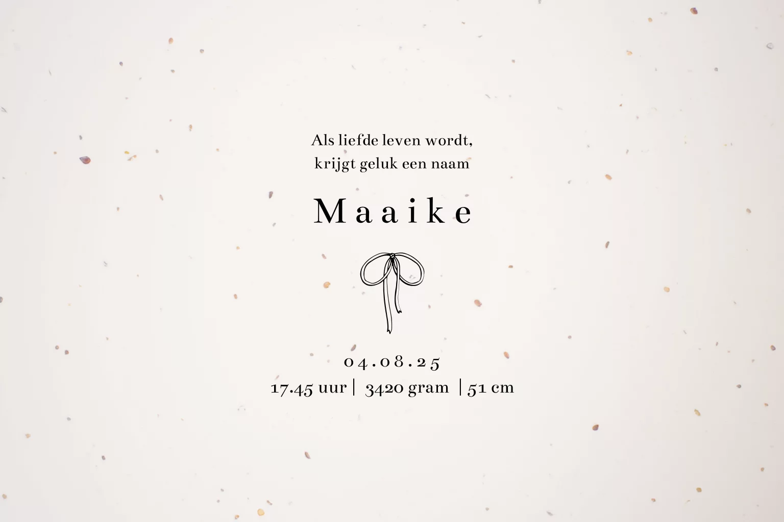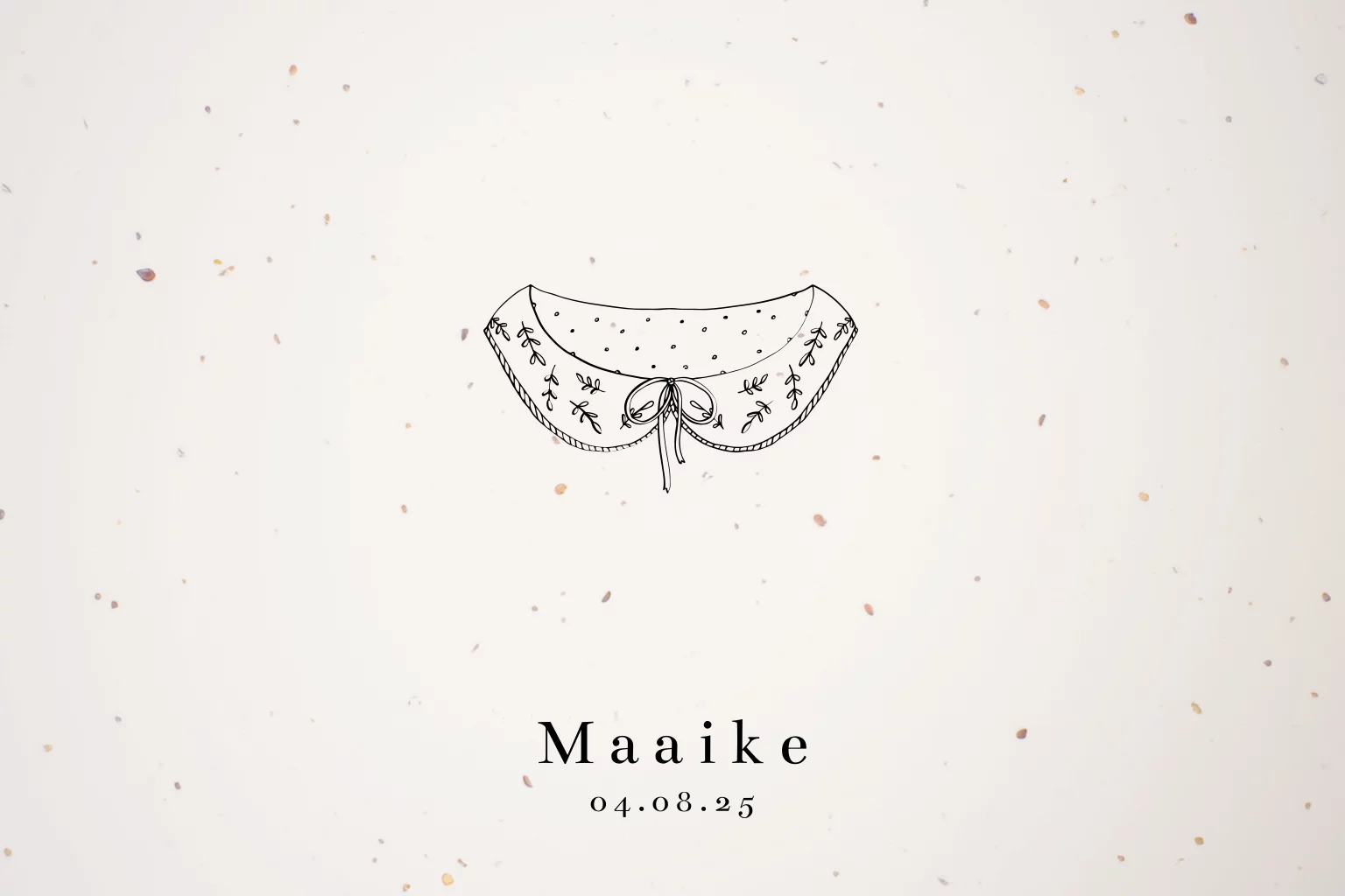 Dit duurzame geboortekaartje voor een meisje met tekening van een kraag en strikje is een superlief geboortekaartje voor jullie dochter. Pas de kleuren en lettertypes eenvoudig aan zodat het geboortekaartje helemaal bij jullie past.