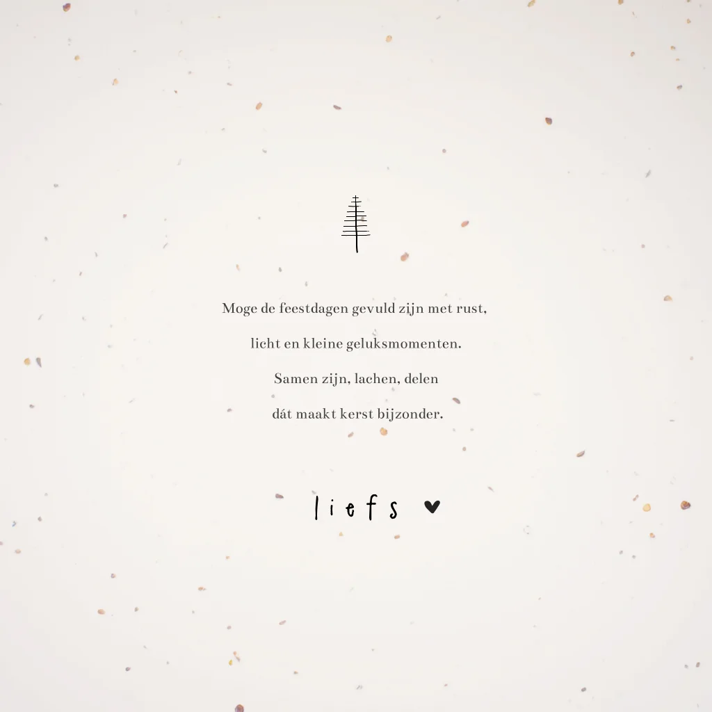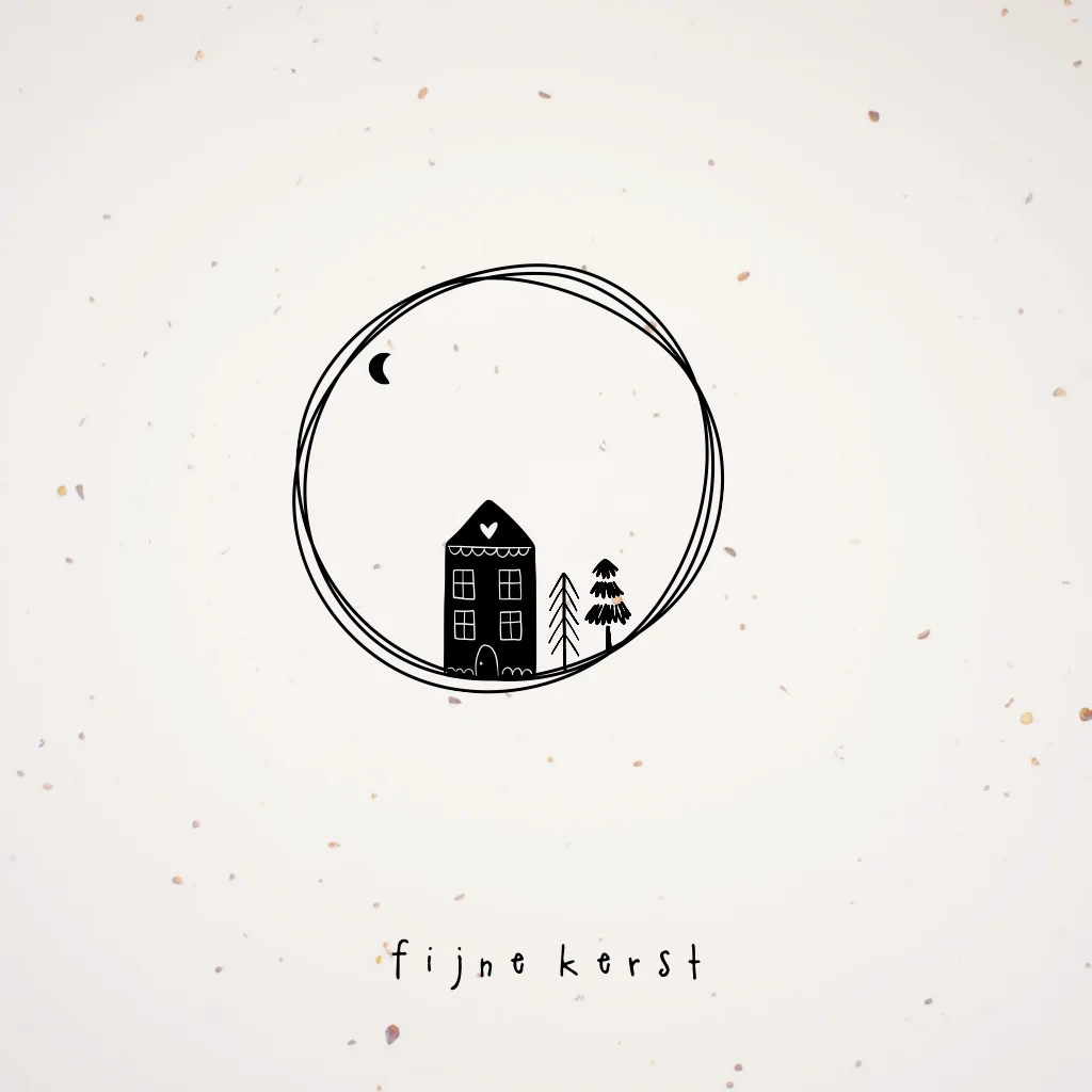 Een stijlvolle, minimalistische kerstkaart met een huisje, bomen en maan in zwart-wit lijntekening. De rustige illustratie op het duurzame tulpenbollenpapier geeft de kaart een pure en natuurlijke uitstraling. Perfect voor wie graag een bewuste én warme kerstgroet verstuurt.