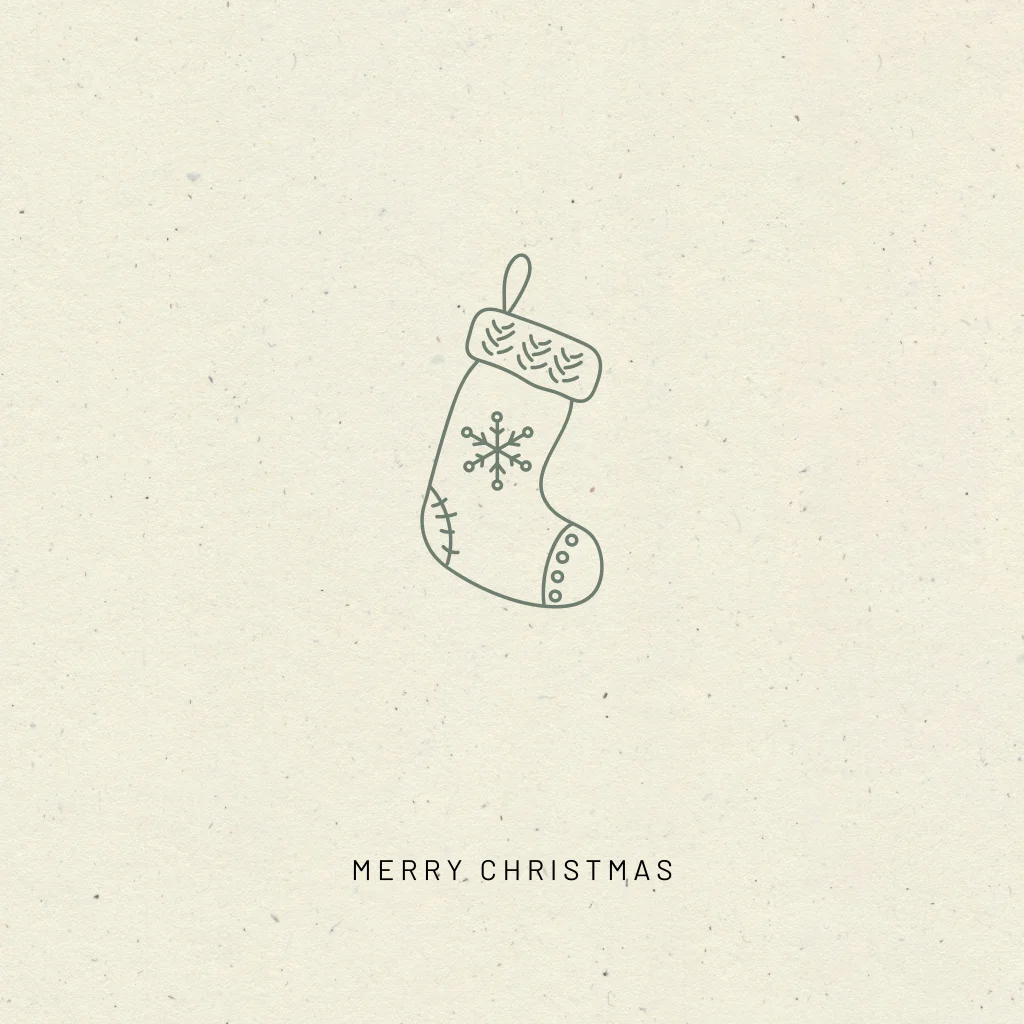 Eenvoudig en minimalistische kerstkaart uit de duurzame kerstcollectie. Met illustratie van een kerstsok. De kleur van de sok en de lettertypes kun je allemaal zelf eenvoudig aanpassen in de online editor.