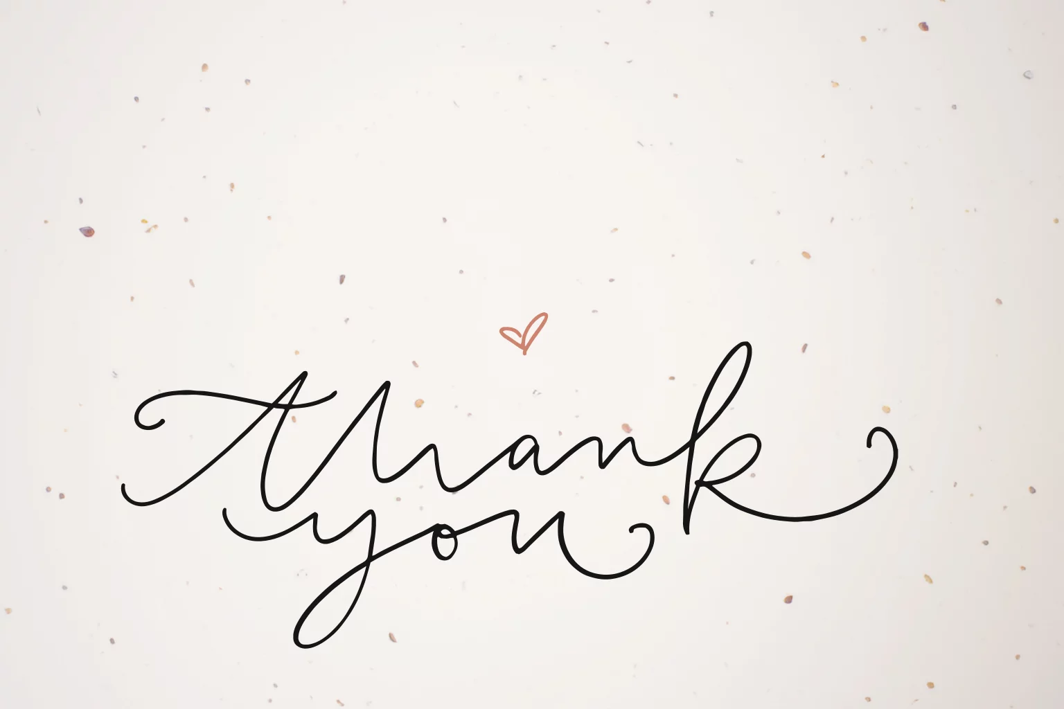 Een lief bedankkaartje uit de duurzame collectie. Op de voorzijde staat in sierlijke letters de tekst Thank you. De kleur van de hartjes kun je eenvoudig aanpassen in de editor. Het is niet mogelijk om de kleur wit te drukken op dit milieuvriendelijke papier.