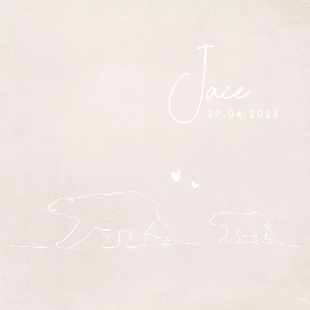 Een naturel geboortekaartje voor een jongen of meisje met lijntekening van twee ijsberen in roséfolie. Wil je een andere kleur foliedruk of achtergrondkleur? Pas het eenvoudig zelf aan in de online editor.