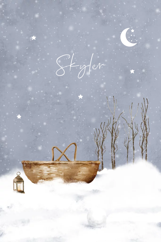 Een geboortekaartje met een winterse sfeer is perfect voor een baby die in de winter geboren wordt. Het mandje met sneeuw en de lantaarn op de kaart zorgen voor een mooie, rustgevende uitstraling en is leuk voor zowel jongens als meisjes.