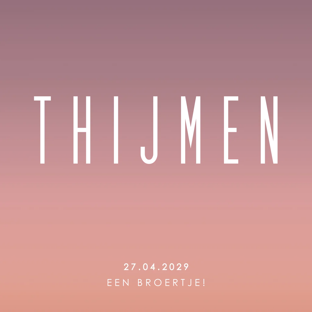 Stoer geboortekaartje met gradient verloop in roodtinten. Dit geboortekaartje heeft dubbelzijdig goudfolie maar wil je liever een andere kleur foliedruk dan kun je dit eenvoudig aanpassen.