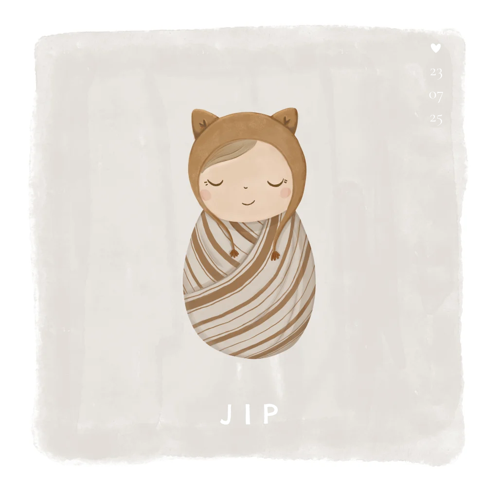 Lief geboortekaartje met illustratie van een baby met mutsje