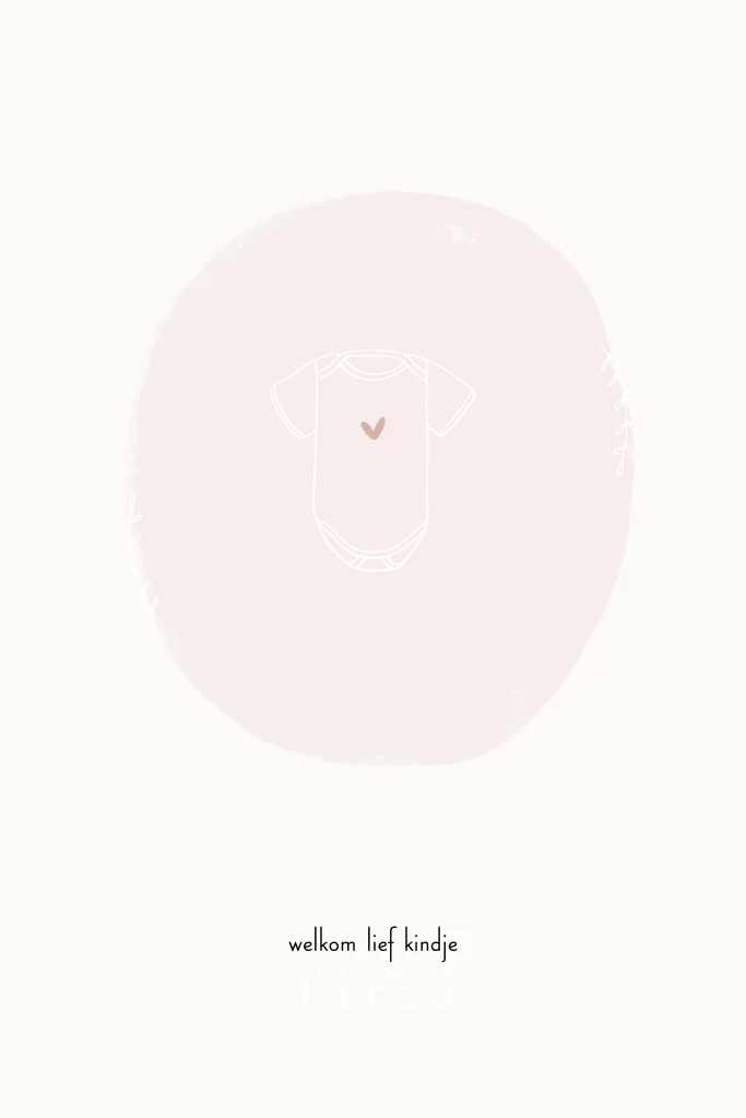 Een lief geboortekaartje met schattige romper, hartje en takjes in roséfolie. Een stijlvolle en lieve manier om de geboorte van jullie dochter aan te kondigen. Pas het geboortekaartje zelf naar wens aan voor jullie kleine meisje.