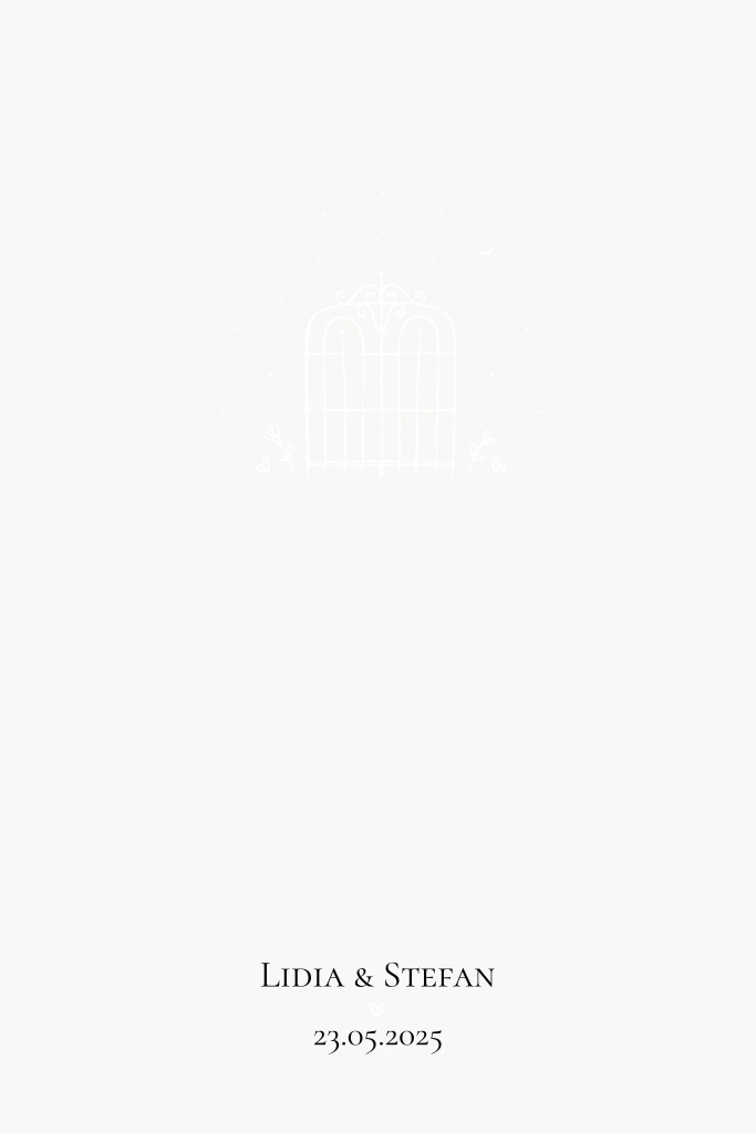Een mooie, romantische trouwkaart met handgetekende illustratie in goudfolie. De kleur van de achtergrond en de foliedruk kunnen gewijzigd worden.