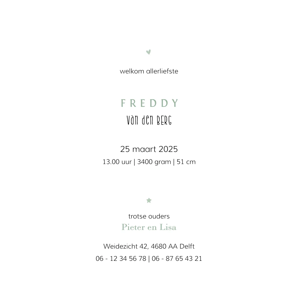 Geboortekaartjes folie enkelzijdig