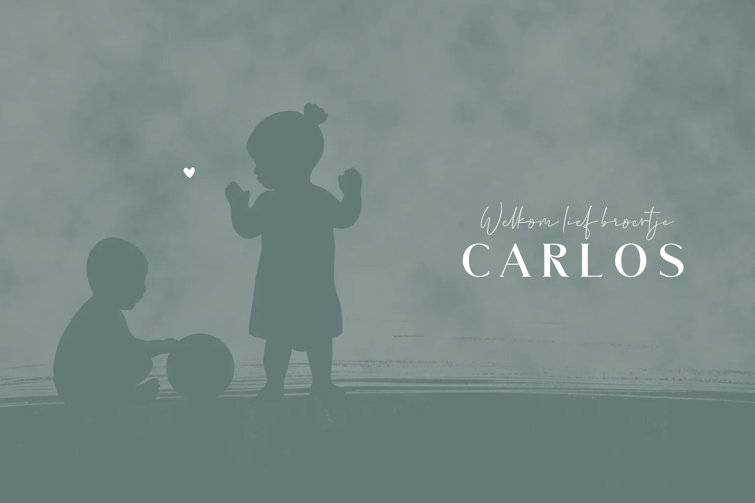 Een lief geboortekaartje met silhouet van broer en zus spelend met een voetbal. Personaliseer het ontwerp eenvoudig in onze editor.