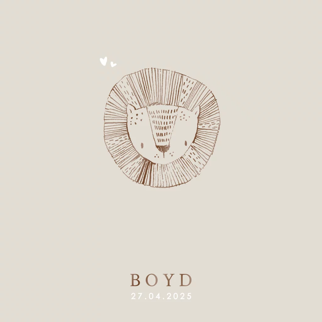Een geboortekaartje met illustratie van lief leeuwtje in hoogglans. Je kunt dit geboortekaartje gemakkelijk aanpassen naar je eigen wensen. Kom je er niet uit of heb je vragen? Neem dan contact met ons op. We helpen je graag.