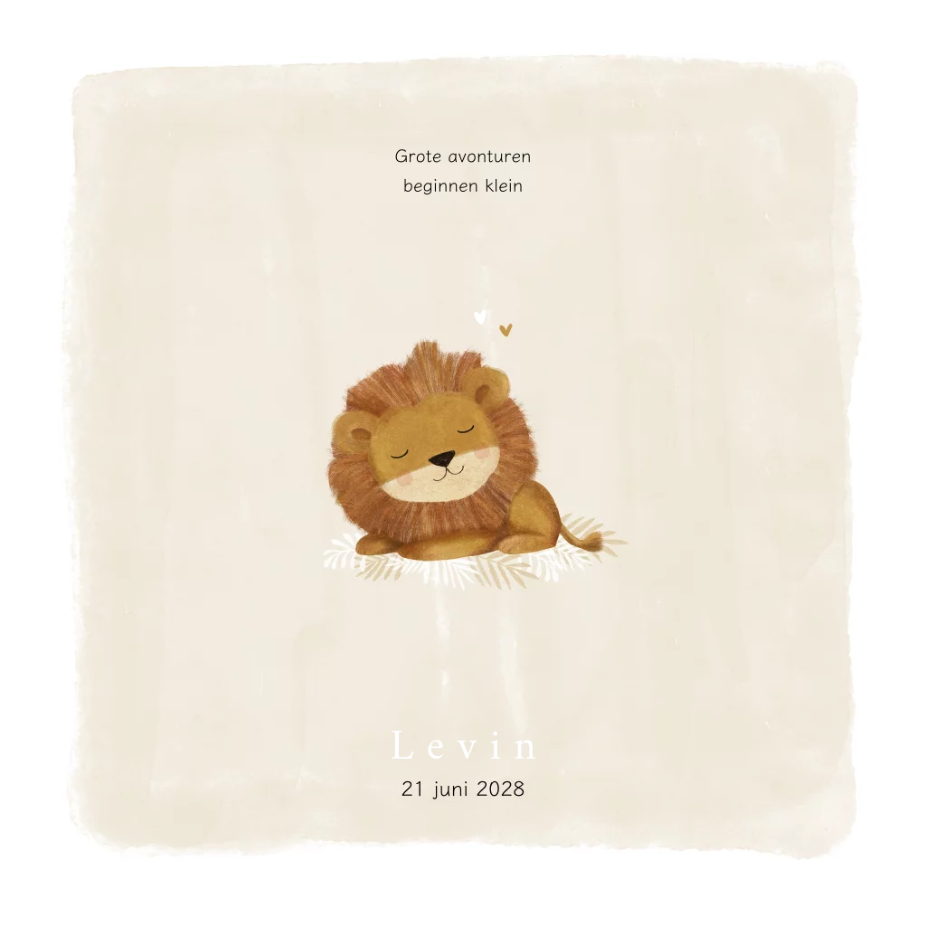 Dit geboortekaartje voor een jongen heeft een schattige illustratie van een lief leeuwtje en foliedruk. Pas het kaartje eenvoudig aan naar jouw wensen!