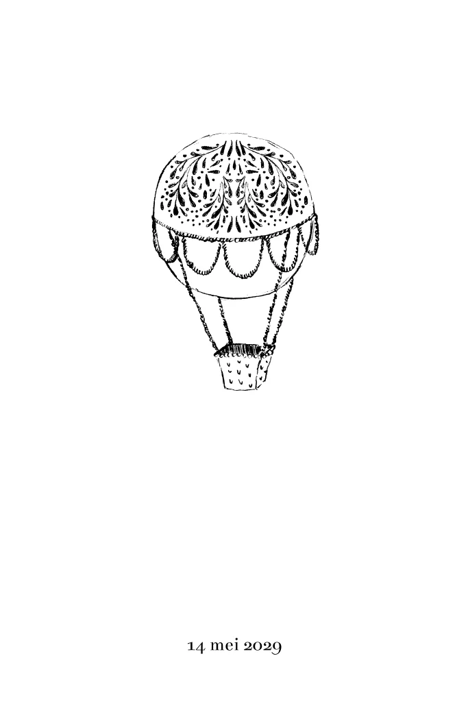 Een opvallend geboortekaartje voor jullie zoon of dochter. Kleine avonturen beginnen klein. Op de voorzijde een getekende luchtballon en sierlijke takjes in roséfolie. Wil je een andere kleur folie? Dit kun je eenvoudig aanpassen in de editor.