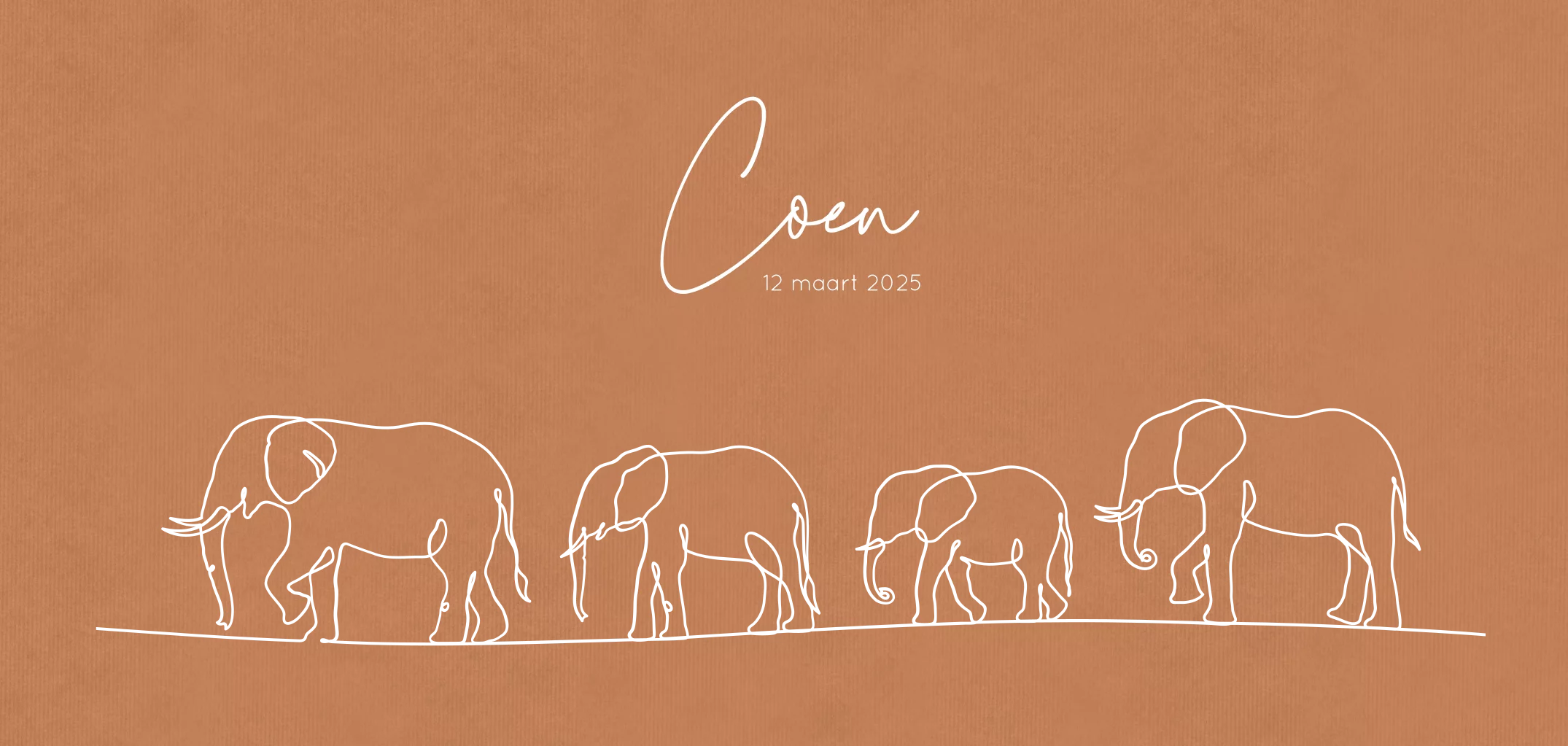 Is er een broertje of zusje op komst of geboren? Dit hippe geboortekaartje met lijntekening van vier olifanten in roséfolie is leuk om de geboorte van jullie kindje aan te kondigen.