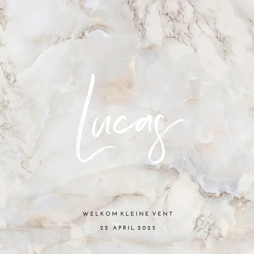 Een minimalistisch en stijlvol geboortekaartje dat zeker zal opvallen bij familie en vrienden. Met marmer motief en de naam van jullie kindje in goudfolie. Aan de binnenzijde kun je een foto van jullie kindje plaatsen voor een heel persoonlijk en uniek geboortekaartje.