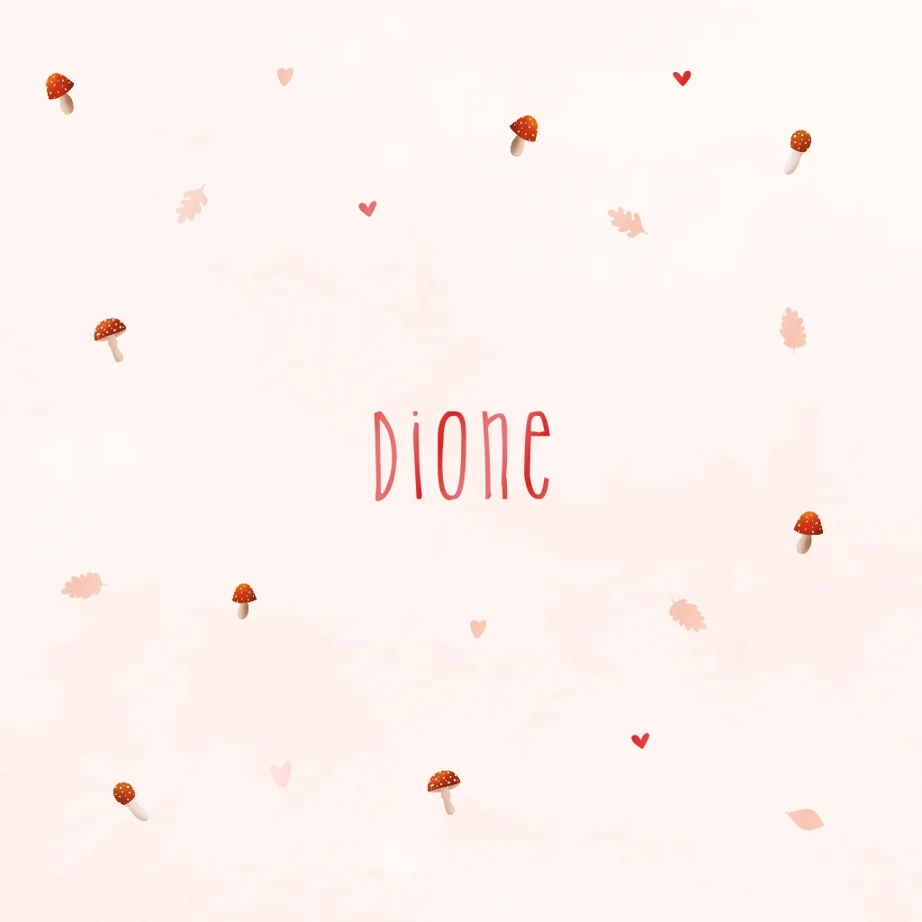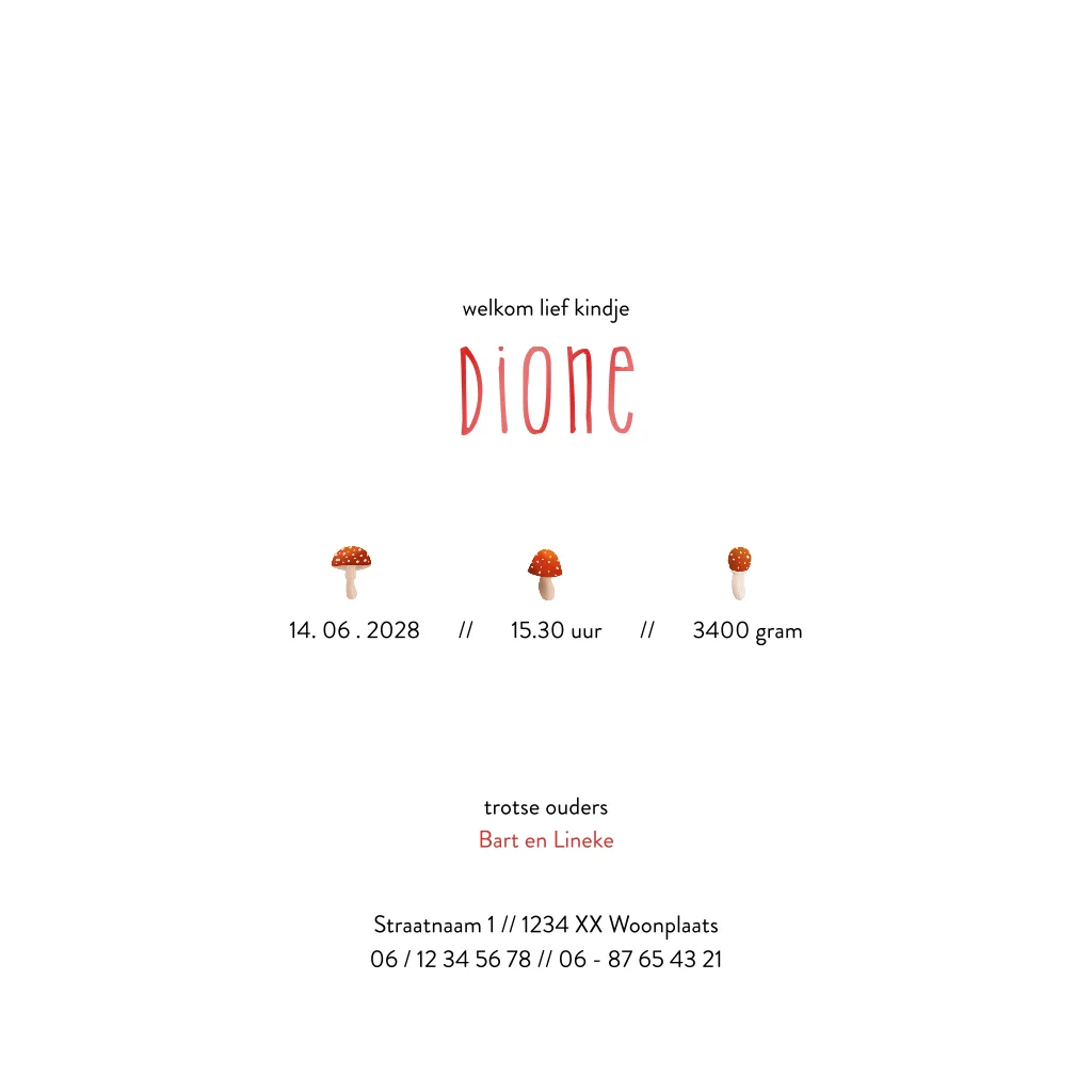 Herfst geboortekaartje met lieve paddenstoeltjes