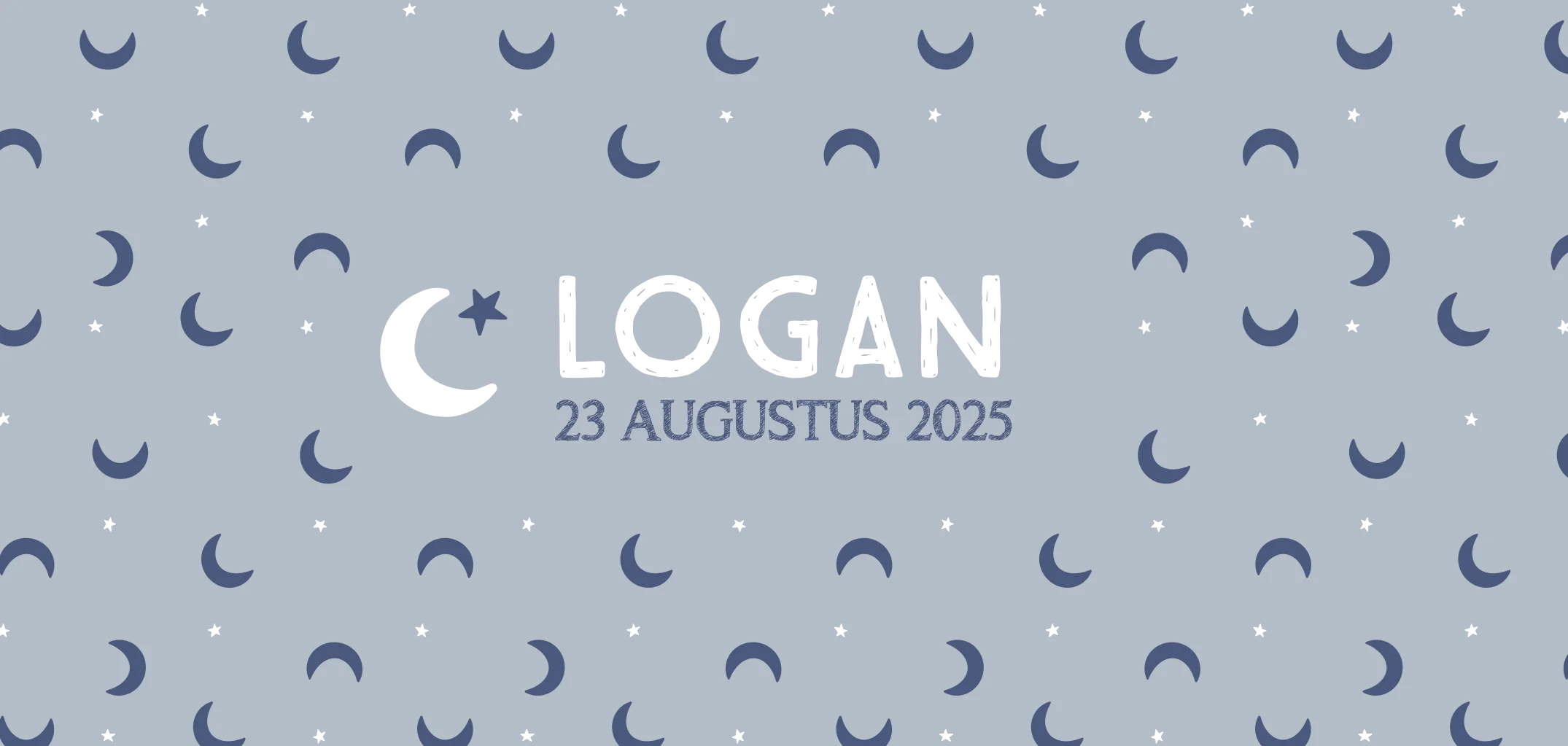 Een mooi jongens geboortekaartje met blauwe maantjes en gouden sterretjes. De kleuren kun je eenvoudig aanpassen in de online editor zodat het geboortekaartje helemaal bij jullie past.