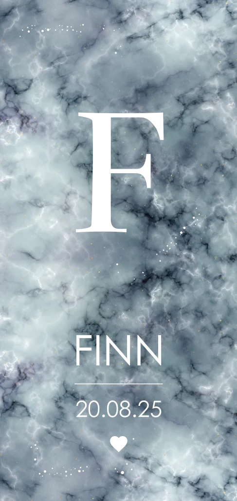 Een langwerpig geboortekaartje voor de geboorte van jullie kindje. Op de voorzijde een blauw marmer motief in combinatie met goudfolie. Je kunt zelf kiezen welke kleur folie je wilt en ook kun je het lettertype aanpassen.