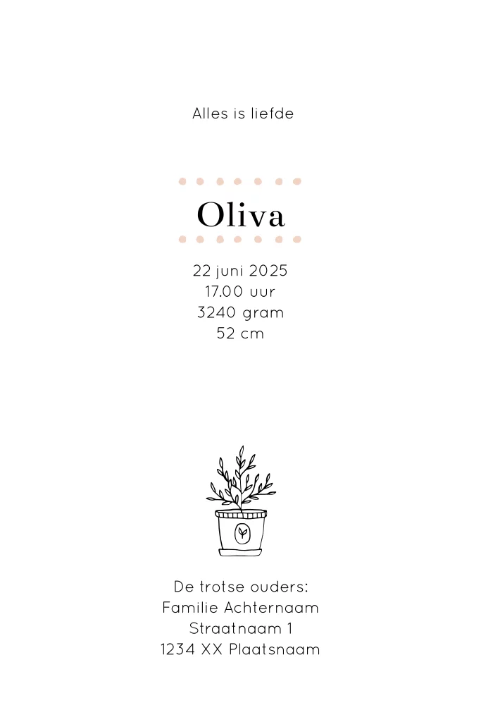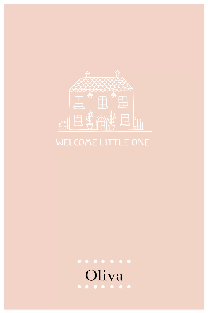 Een stijlvol geboortekaartje om de geboorte van jullie dochter aan te kondigen. Met op de voorzijde een huisje en de tekst Welcome Little One. Aan de binnenzijde kun je een foto van jullie dochter plaatsen. De roze achtergrondkleur en de kleur van het folie kun je naar wens aanpassen.