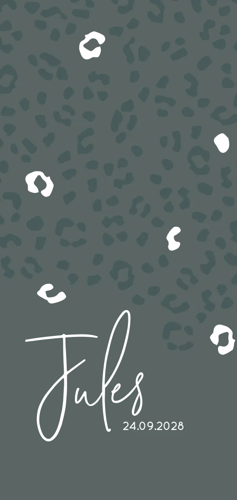 Een origineel geboortekaartje voor stoere kids met panterprint in groen en goudfolie. De kleuren en lettertypes kun je eenvoudig aanpassen in de online editor zodat het geboortekaartje helemaal bij jullie past. Leuk te combineren met het bijpassende kraambezoekboek.