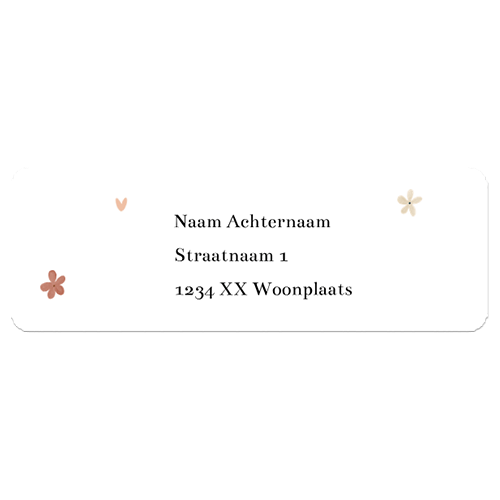 Maak je geboortekaartje persoonlijk met onze schattige adresstickers. Onze adresstickers zijn ontworpen in de stijl van je geboortekaartje, met lieve bloemetjes in waterverf. Het aanpassen van het design is eenvoudig en je kunt de adressen direct invullen.