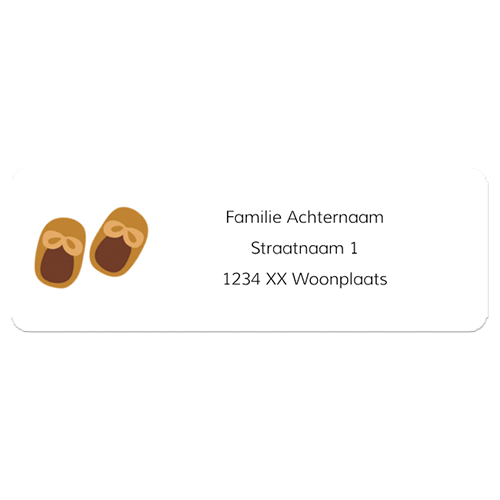 Handige adresstickers in de stijl van je geboortekaartje met lieve babyschoentjes. Je kunt het design zelf aanpassen en de adressen invullen.
