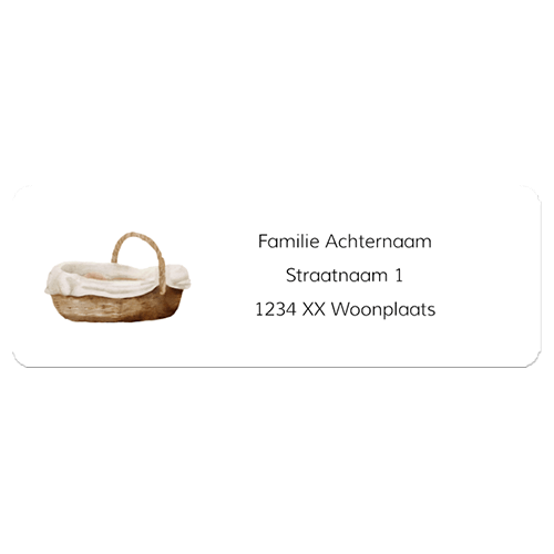 Mooie adresstickers voor jullie geboortekaartjes met een waterverf illustratie van een wiegje. Je kunt het design zelf aanpassen en de adressen invullen.