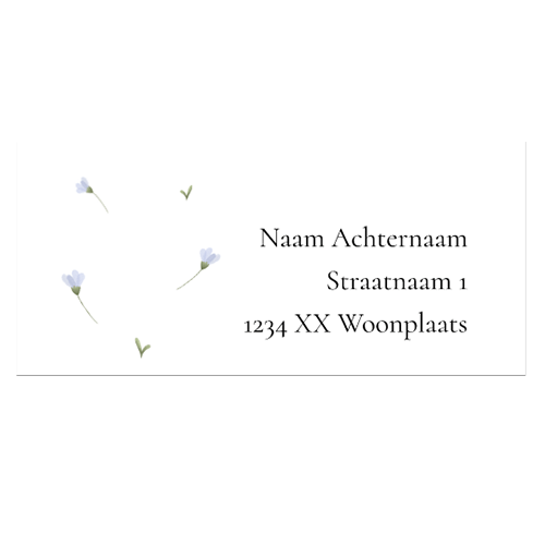 Adresstickers geboorte lieve blauwe bloemetjes en blaadjes