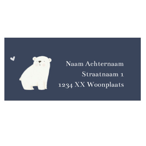 Handige adresstickers in de stijl van je geboortekaartje met illustratie van een schattige ijsbeer met hartje. Je kunt het design zelf aanpassen en de adressen invullen.