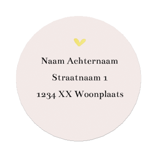 Ronde adresstickers in de stijl van jullie kaartje of met jullie eigen design. Boven de tekst staat een lief hartje in goudfolie. Pas de adressen en het design eenvoudig aan in de online editor.
