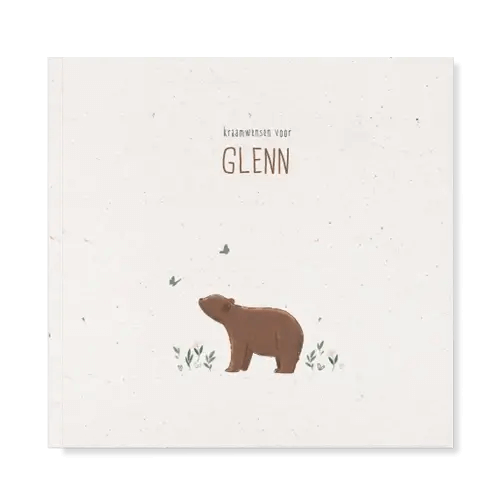 Dit kraambezoekboek met lief beertje en vlindertjes is perfect voor een kraamfeest of babyshower. Binnenin vind je verschillende pagina's waar je leuke foto's en herinneringen van je zoon of dochter kunt schrijven en plakken. Bij dit boek is ook een bijpassend lief geboortekaartje.