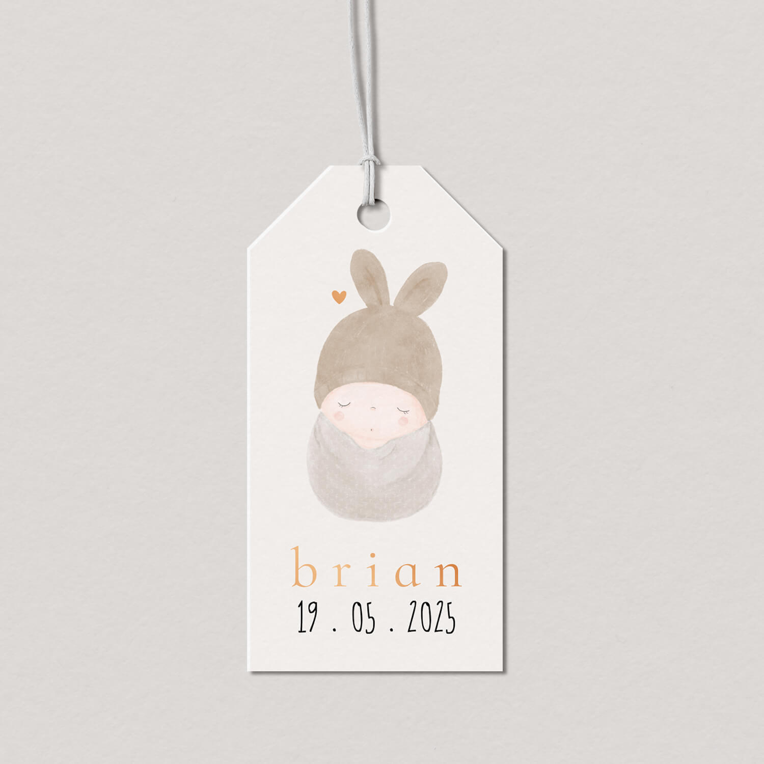 Lief labeltje voor het versieren van geboortekaarten en/of doopsuikers. De schattige baby met mutsje is getekend in zachte, naturel tinten. Het bevestigingsmateriaal kun je los bestellen en vind je bij de Extra producen.