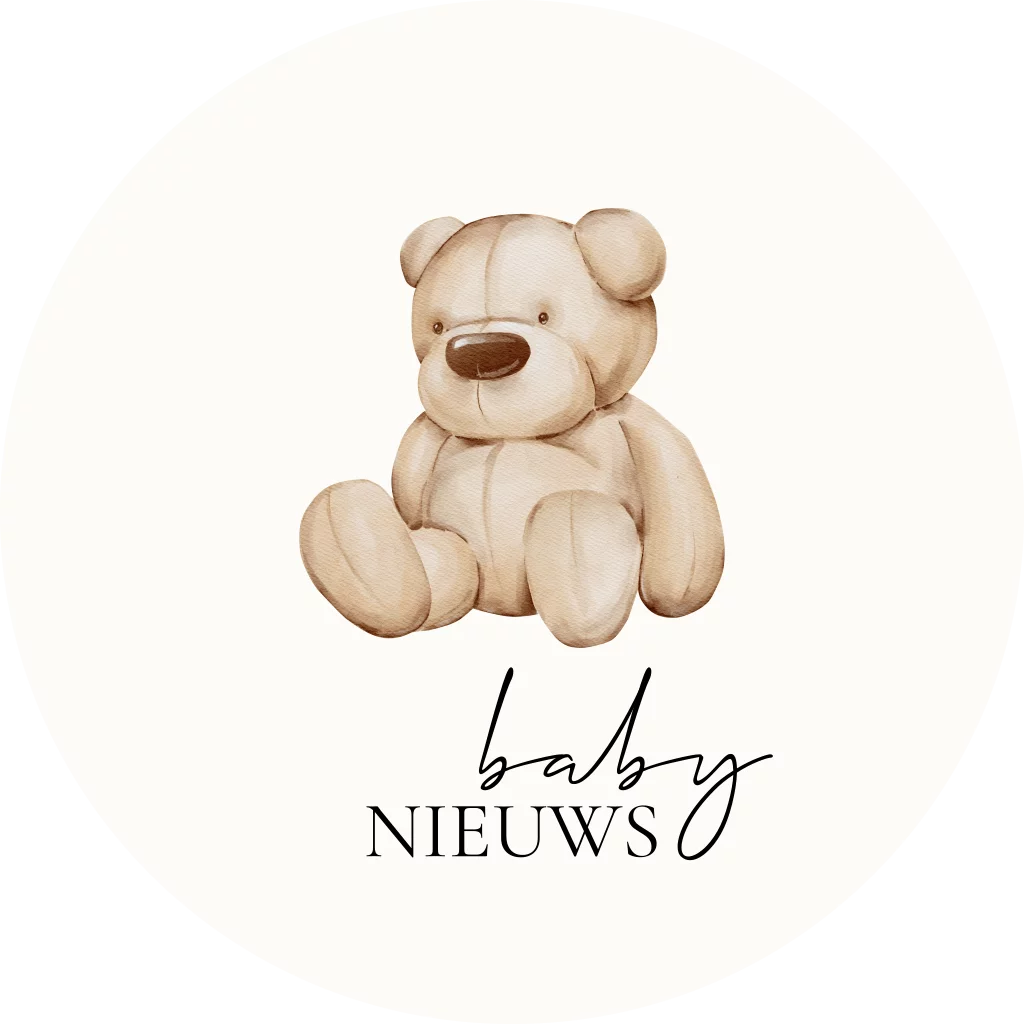 Mooie sluitzegels voor jullie geboortekaartje met illustratie van een lief beertje en de tekst Babynieuws. De tekst kun je eenvoudig zelf aanpassen.
