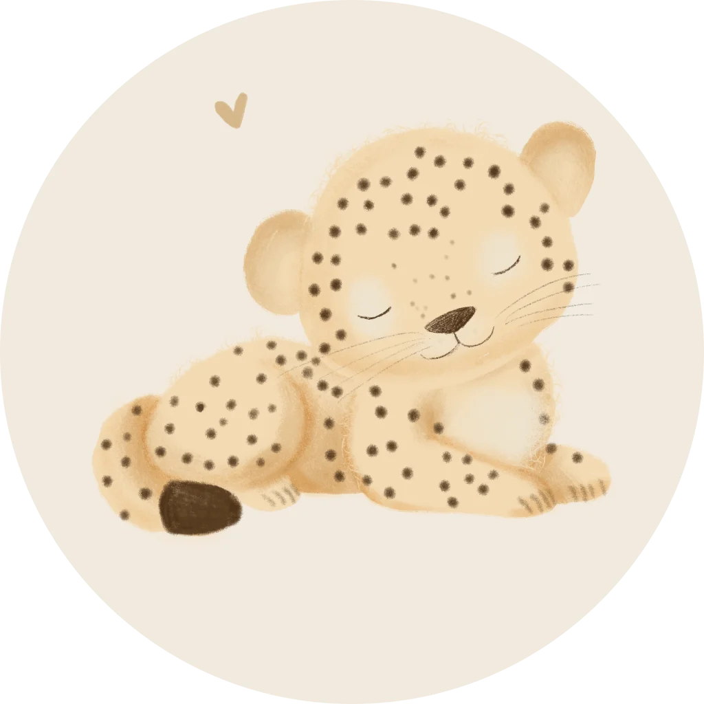 Voeg een schattig detail toe aan je geboortekaartje met deze lieve sluitzegel met luipaard welpje.
