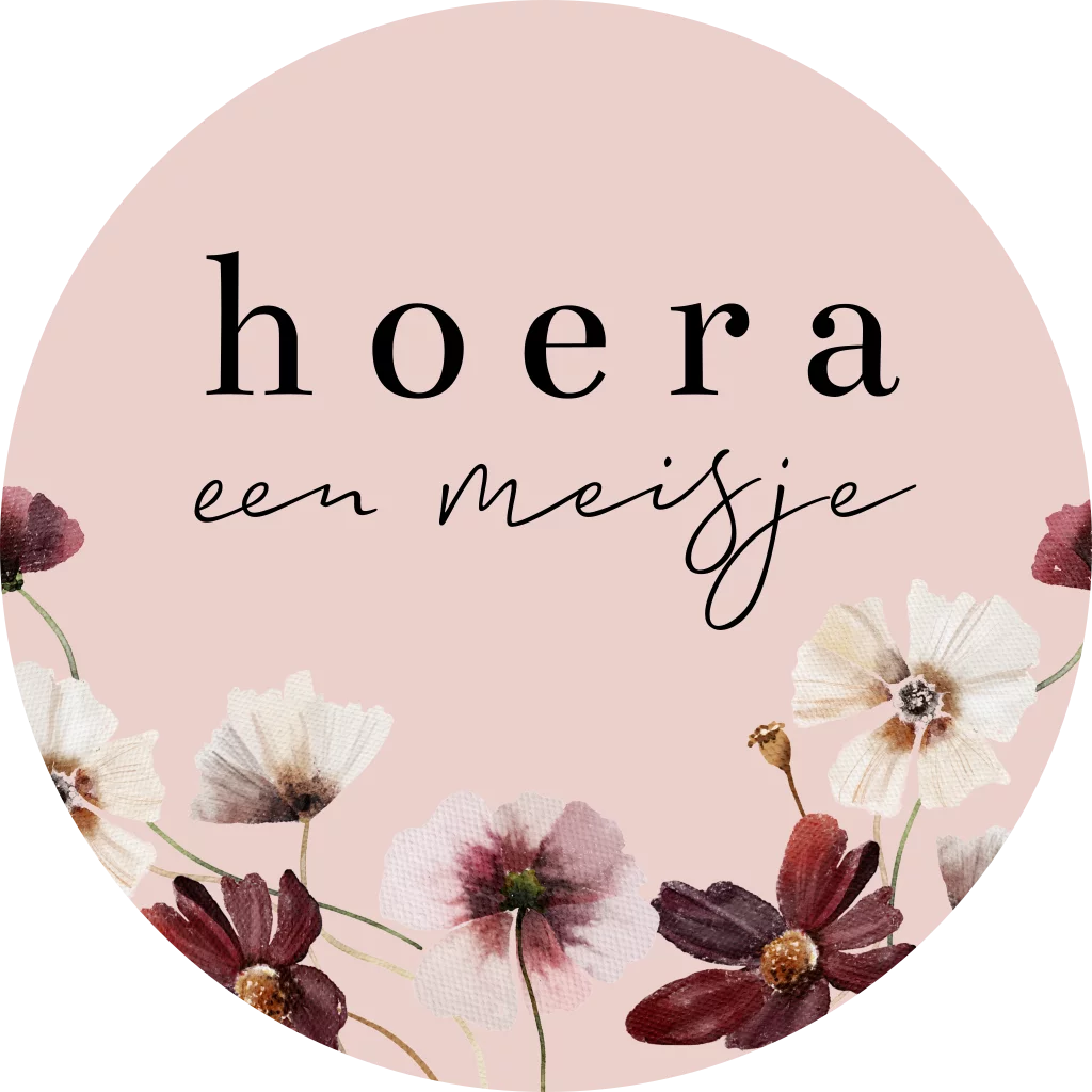 Op zoek naar een mooie sluitzegel voor het geboortekaartje of doopsuiker van jouw kleine meisje? Deze sticker met roze bloemen en tekst Hoera een meisje is volledig aanpasbaar, zodat ze perfect aansluiten bij het ontwerp van jouw geboortekaartje.