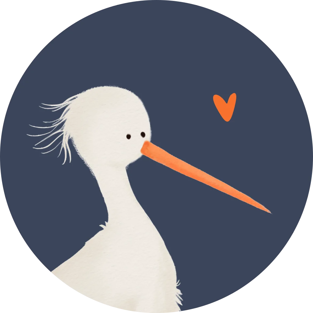 Deze ronde sluitzegels met lieve ooievaar en oranje hartje zijn perfect voor de aankondiging van de geboorte van jullie zoon of dochter. Pas de kleuren eenvoudig zelf aan in de editor zodat ze perfect passen bij het ontwerp van jouw geboortekaartje of doopsuikers.