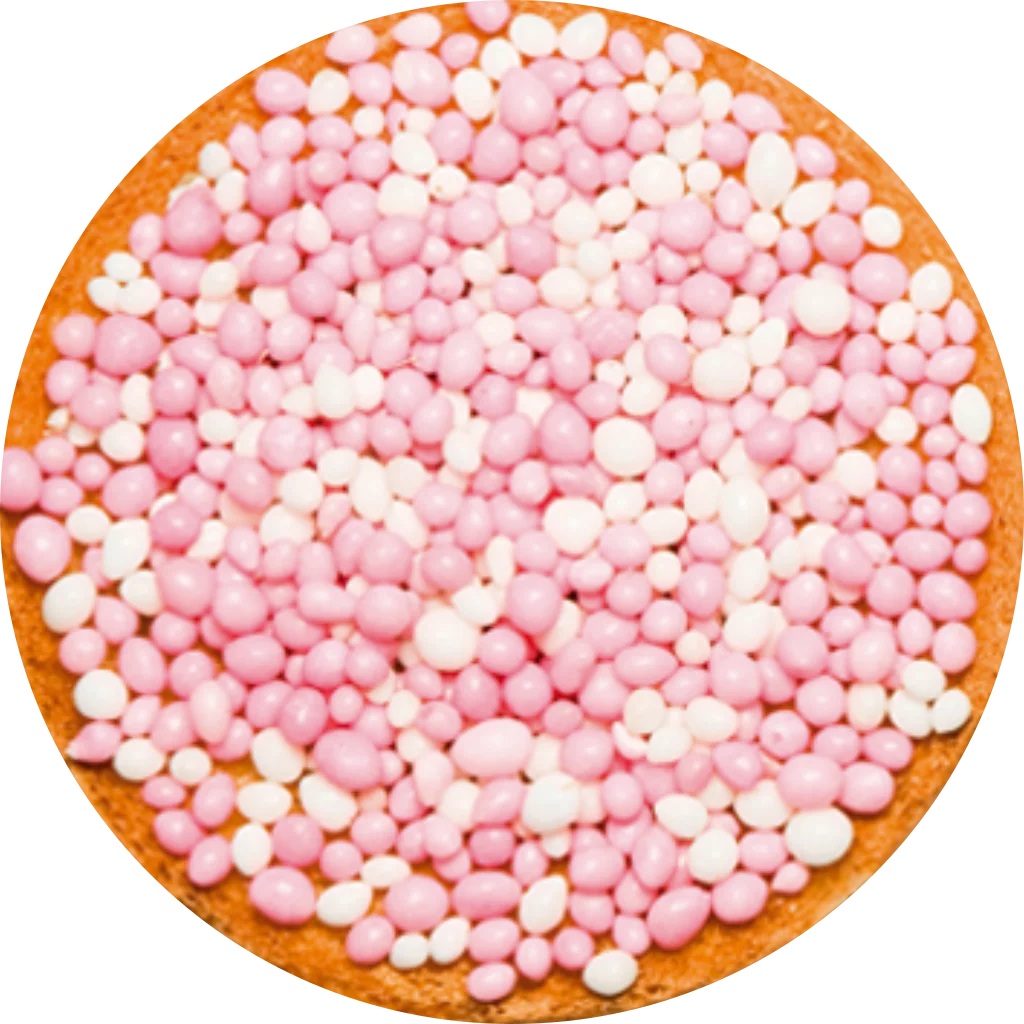 Sluitzegel beschuit met roze muisjes om de enveloppen van jullie geboortekaartjes mee dicht te plakken. Of om cadeautjes of traktaties mee te versieren.