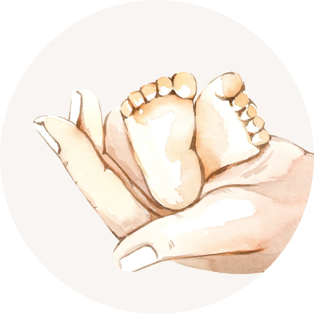 Op de sluitsticker staat een waterverf illustratie van een hand met daarin twee babyvoetjes. Leuk voor zowel jongens als meisjes.
