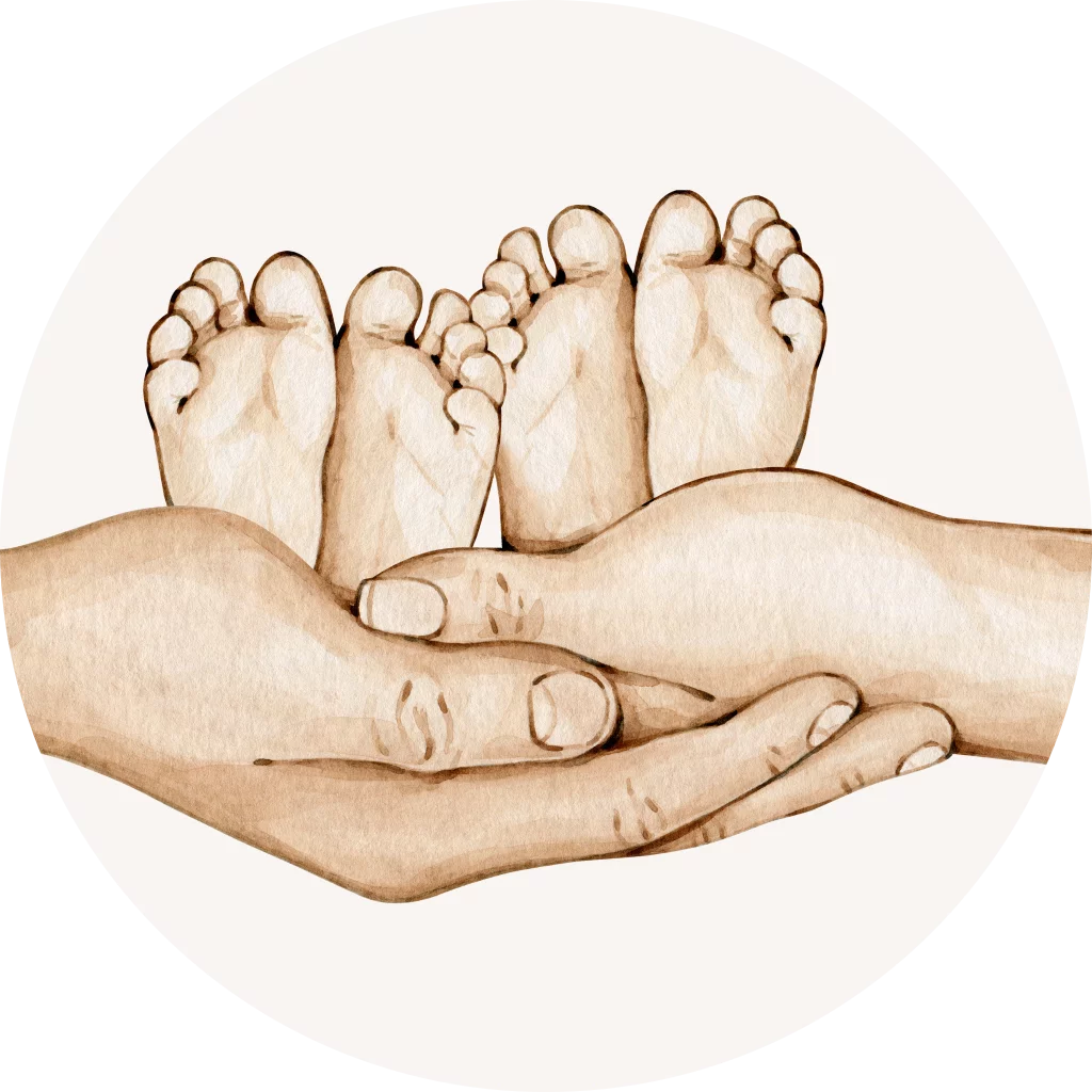 Sluitzegel tweeling babyvoetjes in handen waterverf