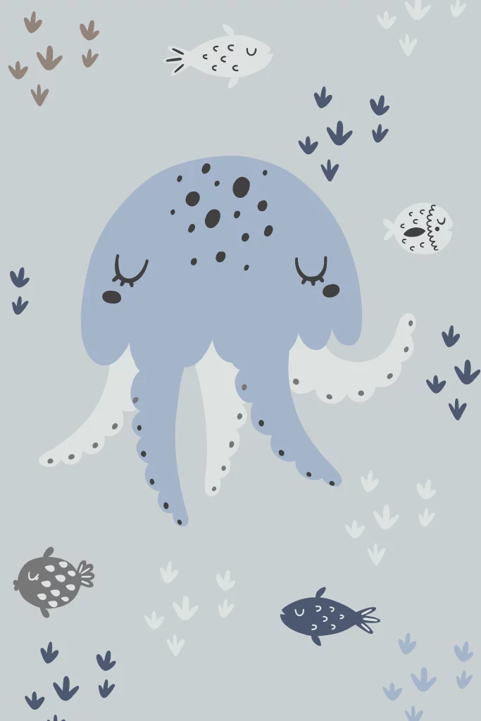 Leuk geboortekaartje met elementen uit de onderwaterwereld. Dit geboortekaartje met zeedieren is in blauwtinten maar de kleuren kun je eenvoudig naar wens aanpassen in de editor.