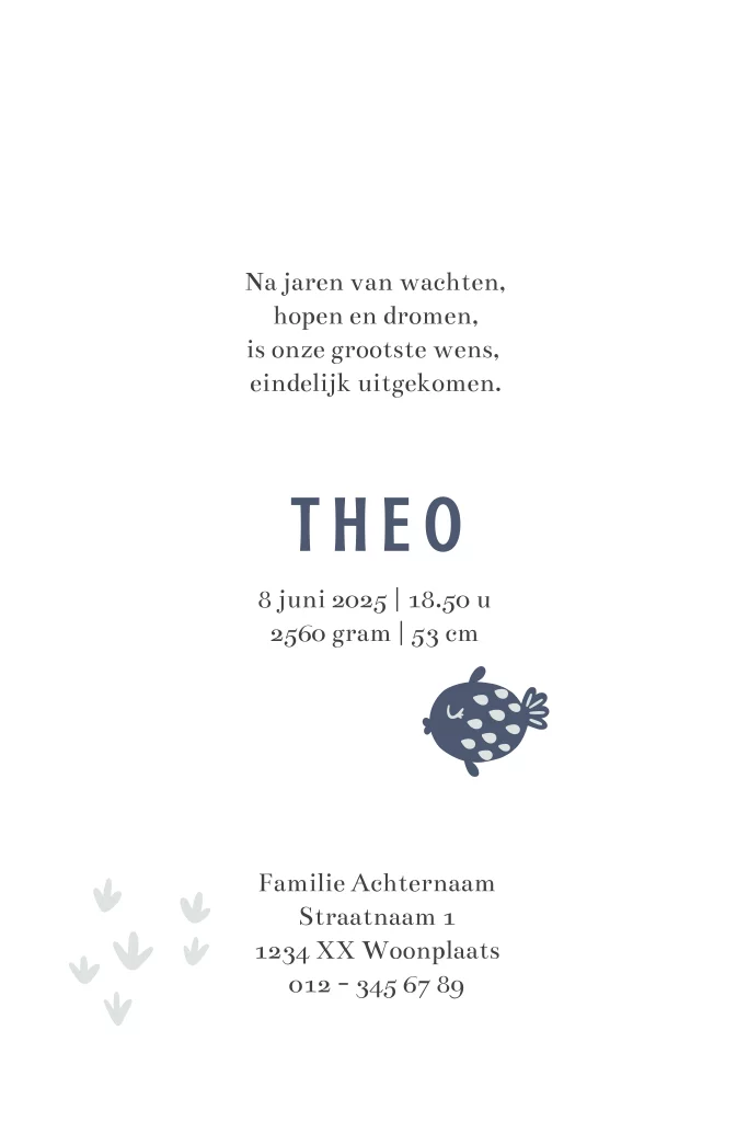 Wil je dit geboortekaartje in het echt bewonderen? Bestel dan een proefdruk voor slechts € 1,-