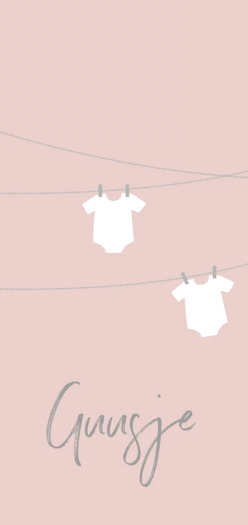 Hip geboortekaartje meisje met rompertjes aan een waslijn