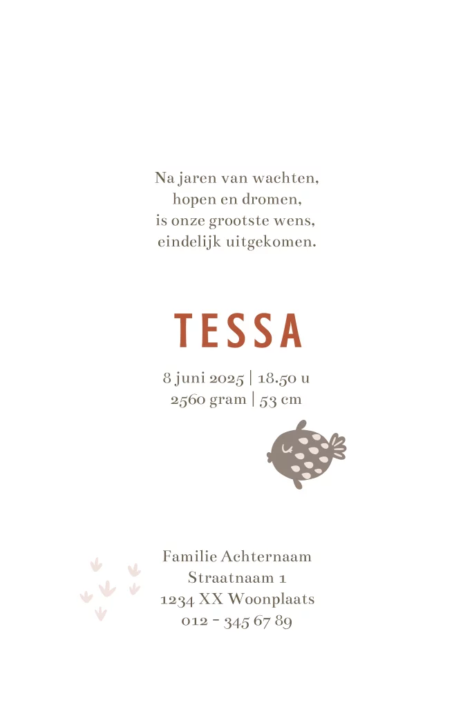 Wil je dit geboortekaartje in het echt bewonderen? Bestel dan een proefdruk voor slechts € 1,-
