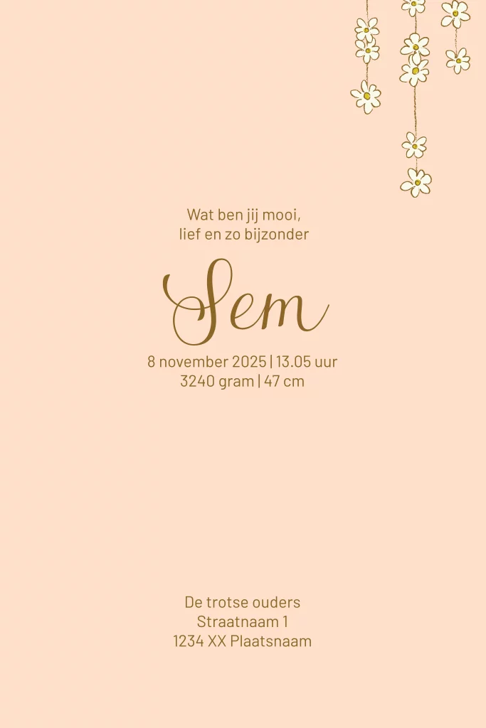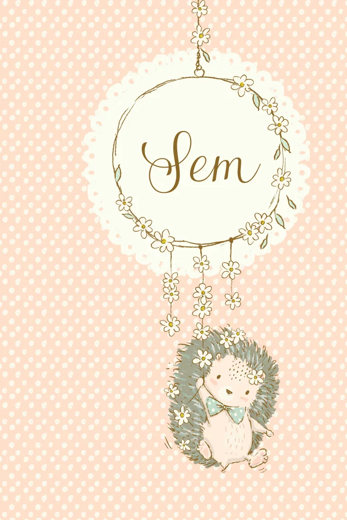 Een lief geboortekaartje voor meisjes in peach roze met een lief egeltje hangend aan een bloemenslinger. Op de voorzijde staat de naam van jullie dochter in een bloemenkrans. Dit geboortekaartje is ook verkrijgbaar in mintgroen.
