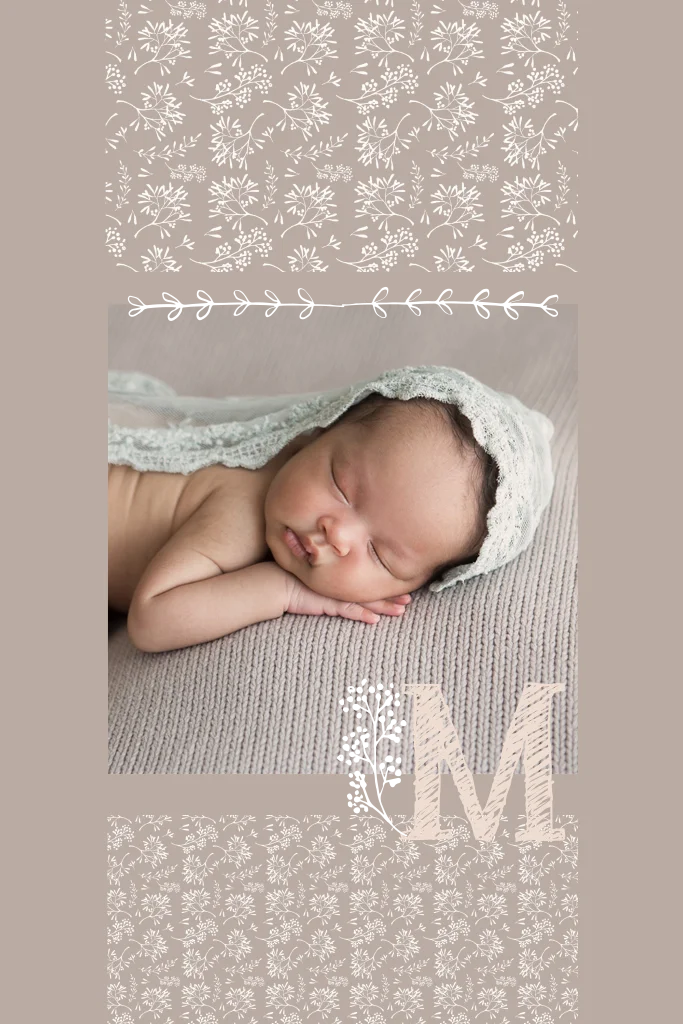 Schattig geboortekaartje voor een lief klein meisje met foto en bloemetjes. Wil je liever een andere kleur? Pas het eenvoudig zelf aan in de online editor.