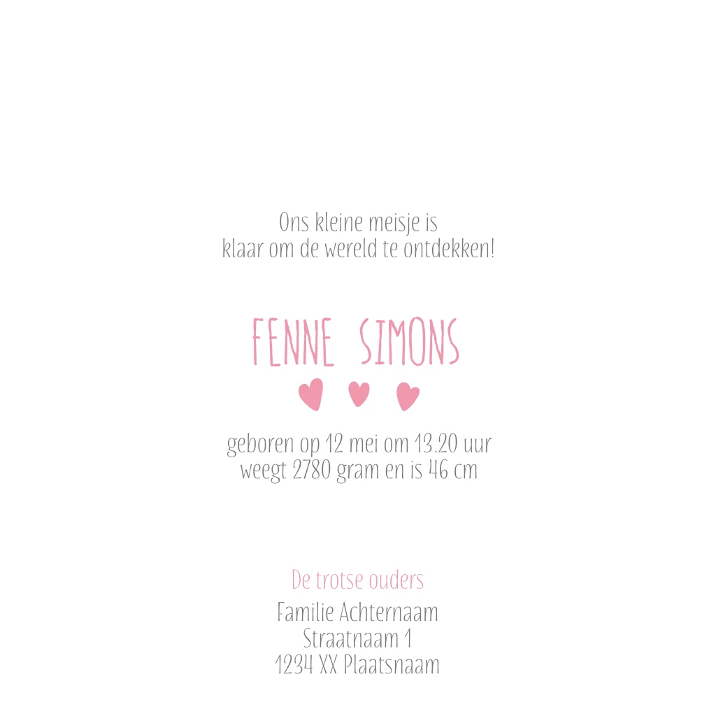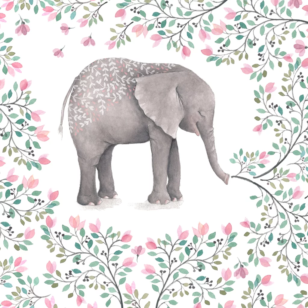 Een zoet geboortekaartje met schattig olifantje, roze blaadjes en groene takjes. Een lief en zoet geboortekaartje om de komst van jullie dochter aan te kondigen. Pas het geboortekaartje gemakkelijk aan via de online editor.